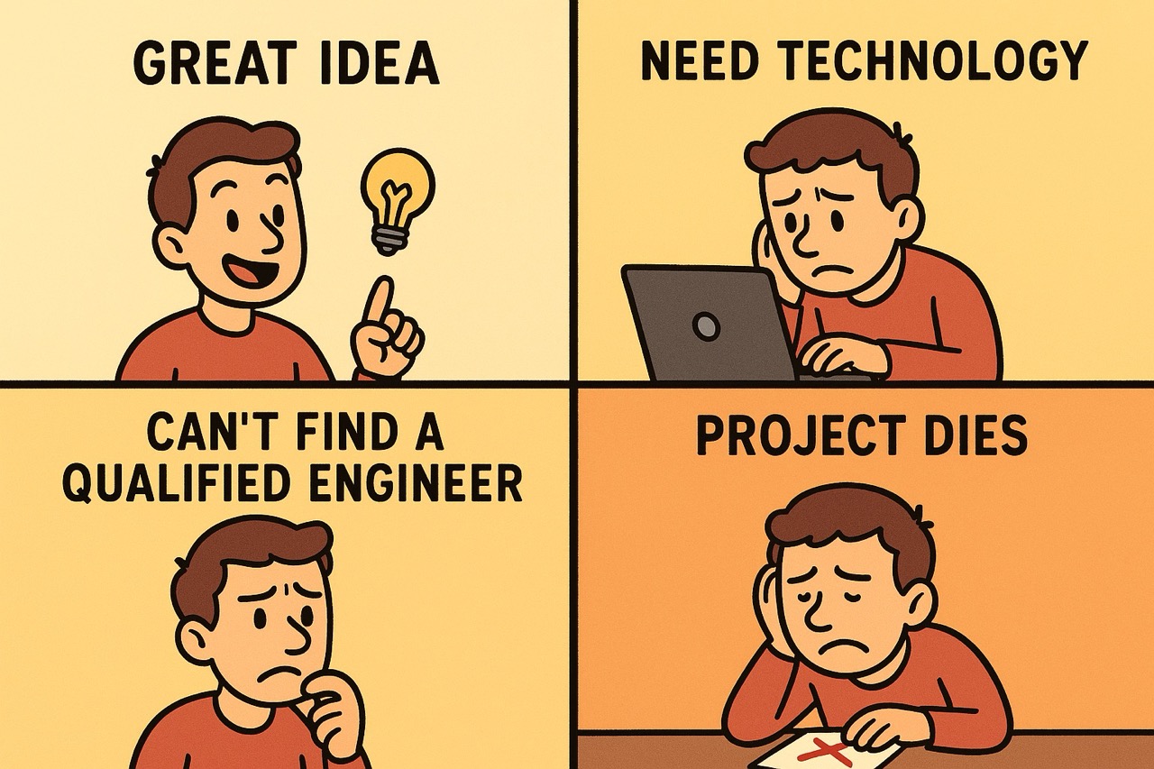 Founder has great idea, founder believes great idea can be built with a lot of technology, founder goes to find an engineer, founder can’t find any qualified engineer, founder convinces themselves that “if only” they had an engineer, their dream would come true. For non-technical founders, the idea that technology is the bottleneck literally becomes the thing that kills the project.